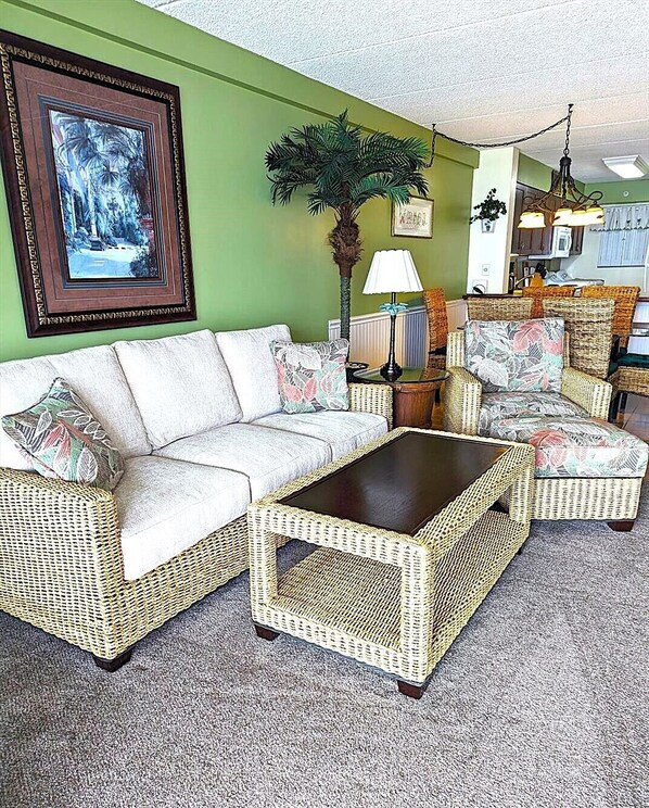 100th Street English Towers # 605 ligger ved havet ved 100th Street. Nydelig Oceanfront sjette etasje 2 soverom, 2 bad leilighet, nylig oppgradert, pent innredet, sentral a / c, vaskemaskin / tørketrommel, oppvaskmaskin, mikrobølgeovn, TV, DVD spiller, innendørs basseng. Occupancy begrenset til 8 personer; bare røykfritt, vær så snill. Parkering for ett kjøretøy. Denne enheten er i minisyklusprogrammet med fleksible svingedager og leier hele og delvise uker. Soverom 1) 1-King Soverom 2) 1-set køyesenger (2-Twins) pluss 1-Full Living Room) Queen sovesofa. Wi-Fi-tjeneste tilgjengelig i hele English Towers Condominium bygningen mot et gebyr. The English Towers belaster en $ 40 ikke-refunderbart byggegodtgjøringsavgift som inkluderer parkering for 1 bil ved ankomst til bygningen. Parkering for en 2dre bil, først til mølle med en pris på $ 10 per dag eller $ 40 per uke. Ny eiendom tilgang ved nøkkel-fob for både utvendige dører og basseng. $ 50 gebyr for erstatning av tapt fob. Det er en off season registreringsavgift på $ 25. 00 fra 9/23/19 - 5/23/2020.