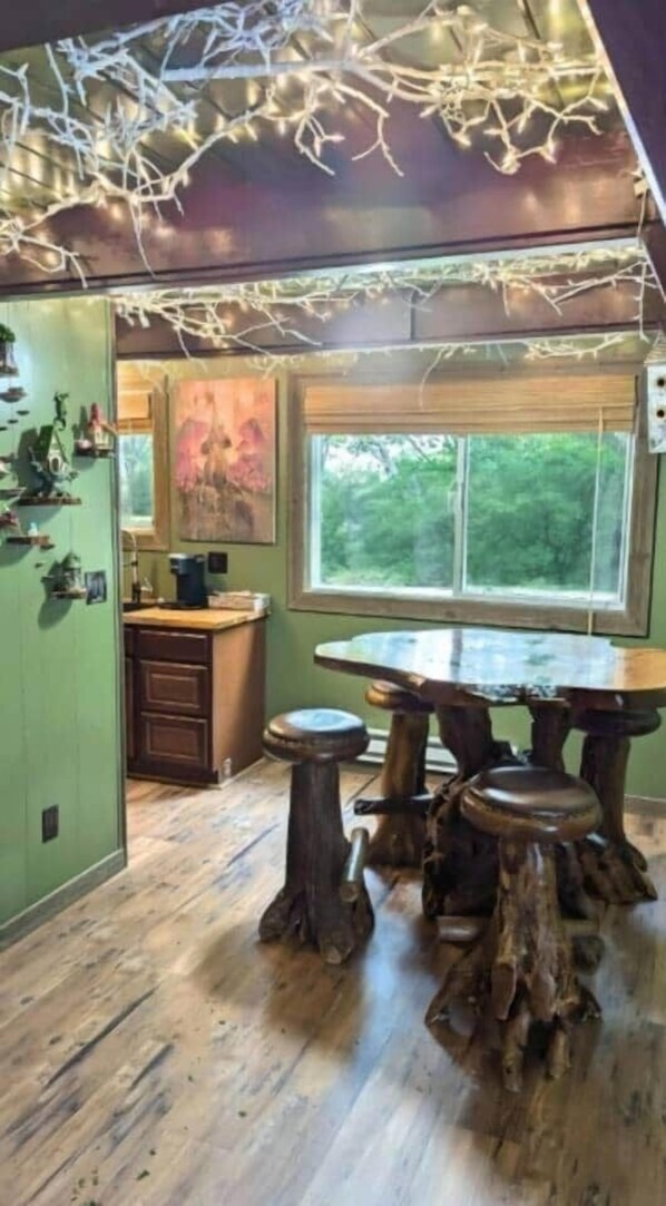Welcome, weary traveler, to the Enchanted Forest Villa, where magic and wonder intertwine to weave an unforgettable tale. Every corner of the Enchanted Forest Villa is thoughtfully designed to evoke a sense of wonder and tranquility, making it the perfect escape for those seeking both adventure and relaxation. Come and lose yourself in the magic of this extraordinary forest hideaway. Step inside and be transported to a fairytale realm, where charming decor blends seamlessly with modern comforts. The space Step inside and be transported to a fairytale realm, where charming, eclectic decor blends seamlessly with modern comforts. The heart of the villa is its enchanting living area, featuring a gnome village and an elegant electric fireplace that casts a warm, inviting glow while the ceiling is lighted with hundreds of white tree branches creating a mesmerizing feeling. Ascend the spiral staircase, to discover a cozy bedroom that promises restful slumbers and magical dreams. The full kitchen, equipped with brand new, state-of-the-art appliances, including a dishwasher, invites you to create delightful meals with ease. The highlight of the dining area is an spellbinding live-edge, custom-made dining table that comfortably seats up to four guests. The bathroom offers a tub/shower combo for a relaxing retreat. Upstairs features a bedroom with a queen-size bed and a charming bonus room with a hidden twin alcove bed, veiled behind curtains to create a whimsical and magical nook perfect for your kids' delightful dreams. We allow pets at this villa with a pet fee of $25/pet/night + tax. Ahoy, wanderers and seekers of whimsy! Behold, at Shorebirds Villas, where enchantment awaits thee! Nestled within our realm, discover the serene courtyard adorned with a seatin' nook, a picnic table, and a fire pit ablaze for marshmallow roasts. Feast like royalty upon our outdoor BBQ grills whilst young hearts frolic amidst play areas of yore—a medieval castle, a pirate ship sandbox, and steeds for wee ones to ride. Capture memories with life-sized pirate figures, or dare thy crew in a family yard game! Feel the magic in the air, and let your dreams take flight to places where wonder and fantasy come to life. We provide standard amounts of basic consumables like shampoo, conditioner, soaps, toilet paper, paper towels, etc., which are plenty for most guest stays. However, if you're planning an extended stay, please be advised that we don't live locally and will not be able to deliver extra items during your stay. We are always happy to answer any questions over the phone or email and can usually get back to you within an hour. Experience a world of magic and enchantment at our whimsical community of six 2-story villas, each with its own theme. Be transported to far-off lands and exotic cultures from the Hawaiian tropics to the medieval castles to the mysterious sands of Egypt. With 6 villas on the property, you can bring along all your loved ones for a reunion of epic proportions! So why wait? Gather your clan and embark on a wondrous getaway, unlike any other.