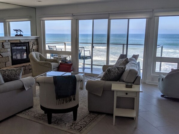 Denne leiligheten ligger rett på stranden! Du har en fantastisk havutsikt fra balkongen.