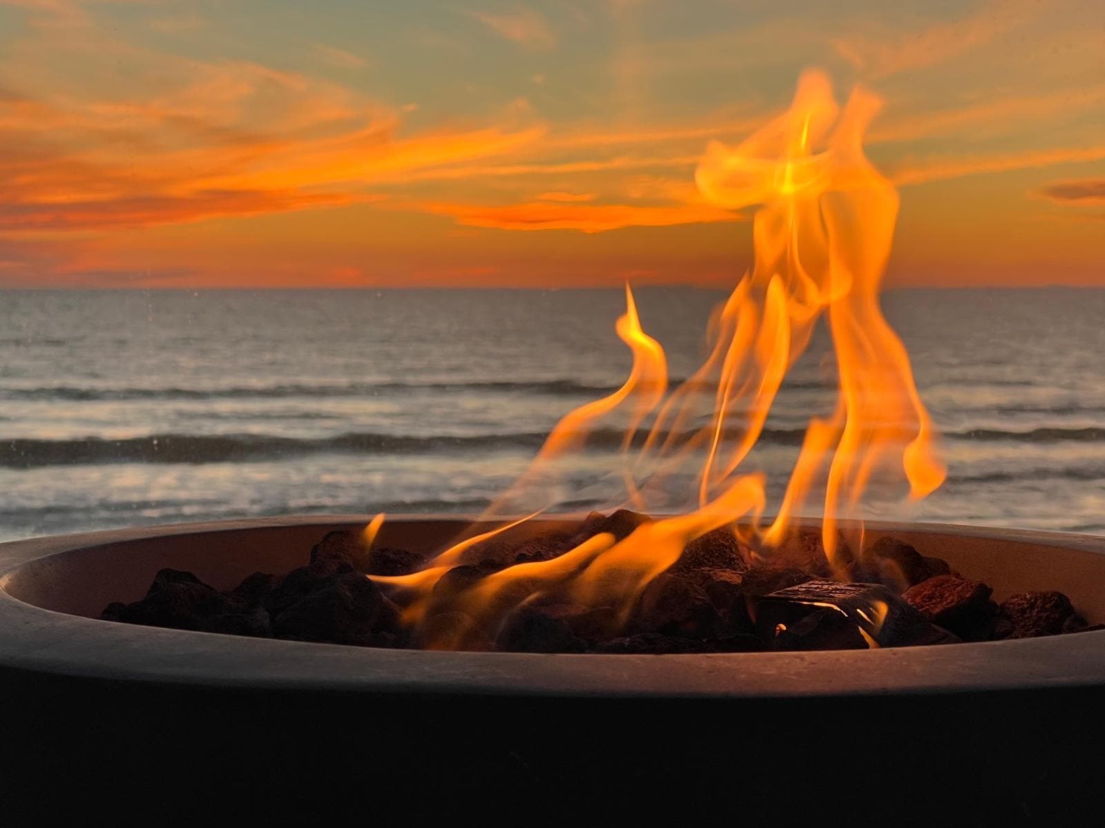 - Ocean Front uteplasser med peis og salongmøbler,