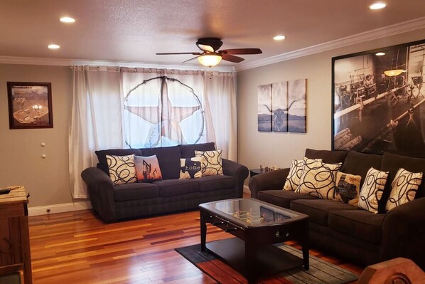 Large spacious living room and kitchen area with a texas appeal , great for large families or small , QUIET NEIGHBORHOOD, FAMILY FRIENDLY room for outdoor seating and activities as well. No ANIMALS allowed