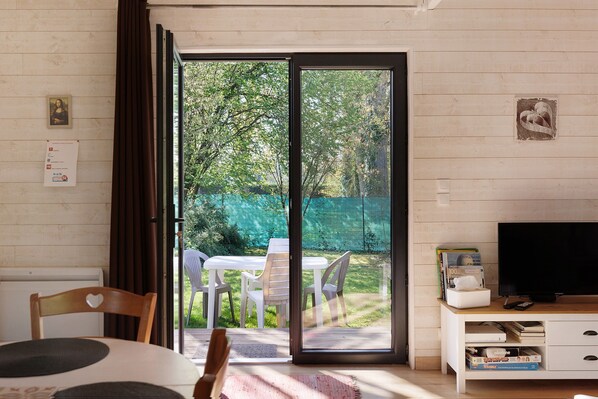 Rated 3 stars, our cozy 49 m² wooden house is set in a 700 m² garden at the heart of a wine village and welcomes up to 4 guests.