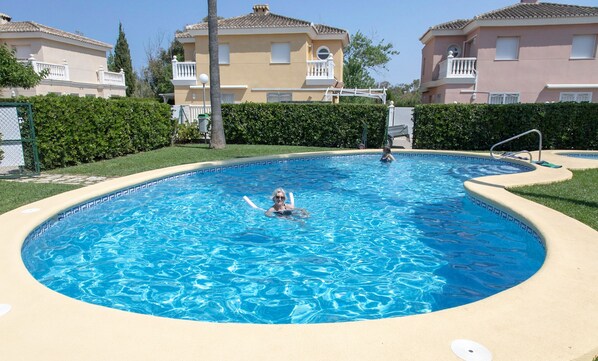 Erdgeschoss: großes Wohnzimmer mit TV, ein Schlafraum mit einem großen Bett (kleines Doppelbett), eine große Küche mit Kühl-/Gefrierschrank, Mikrowelle, Geschirrspüler, Waschmaschine, ein Doppelwaschbecken (super, wenn man Fisch und Meerestiere zubereitet). Arbeitsfläche ist ausreichend vorhanden. Es gibt viele Teller, Tassen, Gläser, Besteck, Schüsseln und Kochgeschirr, man muss nicht nach jeder Mahlzeit sofort von Hand spülen, damit man wieder essen / trinken kann. Allerdings, bei spanischen Sommertemperaturen sollte man sich das Sammeln von benutztem Geschirr im Geschirrspüler gut überlegen!