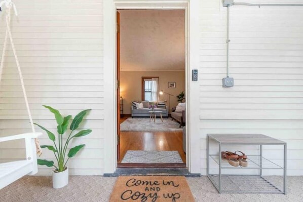 The front door, keyless entry, is located inside the screened in front porch. There is a driveway on the northside of the property to park at least one car. If you have more vehicles, street parking is available.