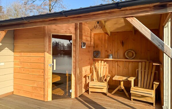 Huset ønsker deg velkommen med en fantastisk beliggenhet ved innsjøen Goudmeer. Med sin koselige innredning i varme farger er det det ideelle stedet for en avslappende ferie i hyggelige omgivelser. Her kan du tilbringe en herlig ferie når som helst på året. Slapp av i den koselige sofaen etter en økt i den infrarøde badstuen og en forfriskende dukkert i innsjøen som grenser til hagen. Gå ut fra stuen og ut på terrassen, lytt til fuglekvitteret og nyt nærheten til naturen og det fantastiske panoramaet på eiendommen din ved innsjøen, og om kvelden kan du tilberede et deilig måltid på grillen.