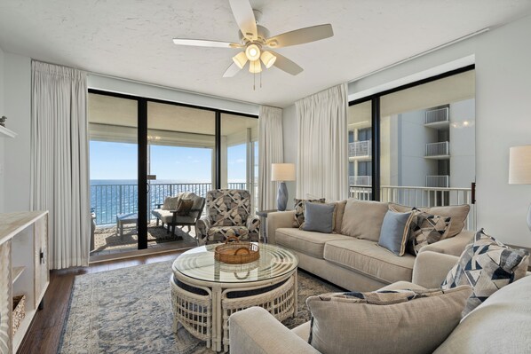 Welcome to Pelican Point, where coastal living meets luxury in the heart of Orange Beach, Alabama. Accommodating 7 guests, this condo offers 3 bedrooms | 2 full baths with plenty of space to spread out and relax. Nestled along the pristine shores of the Gulf of Mexico, this elegant 10th floor condo offers a blend of distinct style and breathtaking views, making every day a beachside paradise. Step onto your private balcony and soak in the stunning vistas of turquoise waters and sugar-white sands. Boasting both indoor and outdoor pools, hot tub, tennis, BBQ grills and fitness center, the amenities at Pelican Point cater to a lifestyle of leisure and recreation. Surrounded by lush landscaping and swaying palm trees, our condo is central to some of the Gulf Coast's top restaurants, shops, and watersports. No Check In procedure to deal with or Standing in lines. When you arrive go straight to your condo and get your swimsuit on - then Hit the Beach!