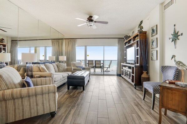 Med sin ekstra store balkong og direkte utsikt mot Gulf, er Palms et flott sted for en Gulf Coast-ferie! Enheten er et vakkert 2 soverom, 2 bad. High end møbler og oppmerksomhet på detaljer vil bidra til å gjøre dette til den mest avslappende ferie leilighet du vil besøke. Denne enheten sover komfortabelt 8 med en KS i master, 2 QS senger på gjesterommet og en QS sovesofa. Vaskemaskin og tørketrommel i full størrelse.