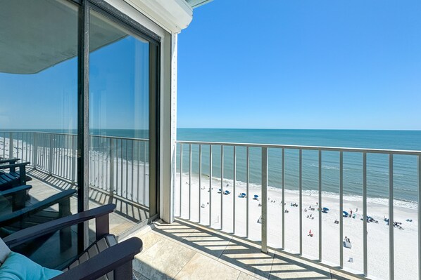 Private Balcony: Enjoy sunset views overlooking the pool and Gulf of Mexico.