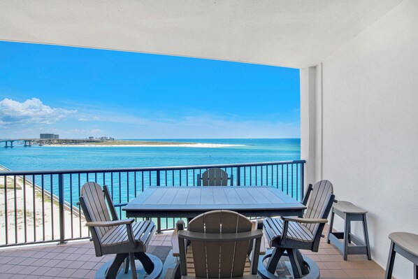 Escape to Grand Pointe 602, a stunning 2-bedroom, 2.5-bath Gulf-front condo ideal for a rejuvenating vacation. Immerse yourself in the peaceful shoreline ambiance while enjoying magnificent views of boat traffic and marine life at Alabama Pointe and Perdido Pass from your spacious private balcony.