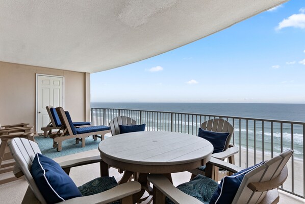Escape to the beachfront paradise of Regency Isle 904, a stunning 2-bedroom, 2.5-bath Gulf-front condo designed for your dream vacation. Perched on the 9th floor, this Orange Beach condo rental offers mesmerizing views of the pristine white sandy beaches and the Gulf of Mexico, visible from the expansive private balcony and through the floor-to-ceiling windows in the living area and Primary bedroom.
