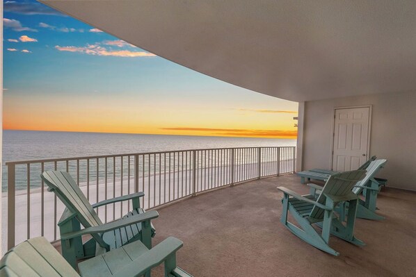 You will enjoy the view of the Gulf from the kitchen sink as well as just about anywhere from inside this condo as well as the panoramic Gulf view from your Big Gulf front private balcony. There are also 4 gas grills on the ground level under the large gazebo, adjacent to the pool area complete with grill cleaning utensils, picnic tables and a HUGE, lush, green grassy play area.
