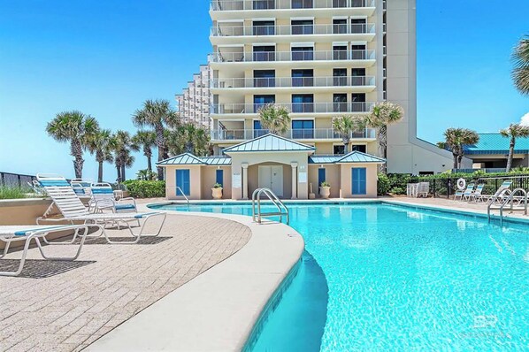 Bluewater Condos offer onsite parking, indoor and outdoor pools, a grilling area, and a boardwalk down to the white sandy beaches of the Gulf of Mexico.