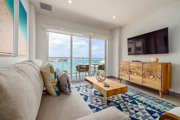 • A stunning infinity pool overlooking the Oranjestad Marina wit tropical deck create a relaxing environment at the center of the complex with poolside lounges and umbrellas from 8:00 am to 9:00 pm.
