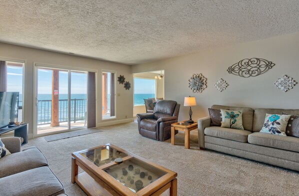 Finn ro ved sjøen ved denne ferieutleien som ligger på en bløff med utsikt over Stillehavet. Denne leiligheten med 2 senger og 2 bad har soveplasser for 8, alle de moderne nødvendighetene i hjemmet, og tilgang til ferieaktige fasiliteter på Cavalier Condominiums. Nyt en dukkert i bassenget, slapp av i badstuen eller gå ned til den hvite sandstranden i Lincoln Beach. Enten du utforsker Depoe Bay eller tar deg en matbit i Lincoln City i nærheten, er dette den perfekte hjemmehjemmet i Pacific Northwest!