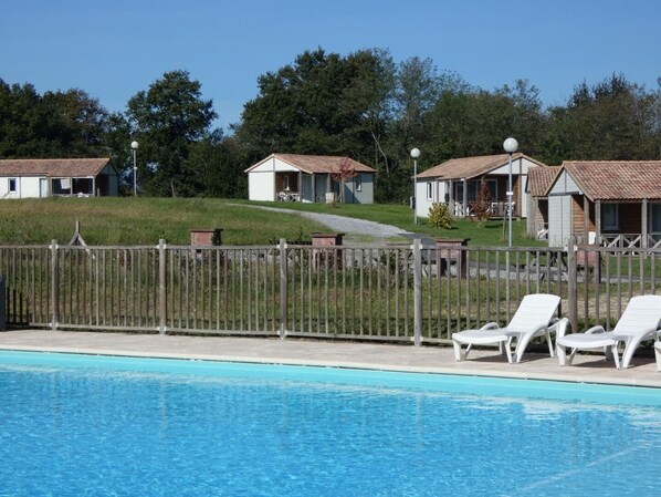 'Don't worry, be happy!', this is our motto in our holiday club. So yes, you can sunbathe by the pool, teach your little one to swim, take part in tennis and pétanque tournaments! But here, in addition, you are in the heart of a privileged environment. So you can also stroll along the barthes, explore the hiking trails on foot or by bike, fish in the nearby Adour... Activities for everyone that punctuate your stay with family or friends! Without forgetting comfort because the chalets are fully equipped to make your life easier. Attention, conviviality and good humor guaranteed! In a park of 20 chalets and mobile homes, this wooden chalet offers you a living room with equipped kitchenette, 2 bedrooms (1 bed 140 and 2 beds 80), shower room and toilet. Private terrace with garden furniture. Swimming pool, tennis, hiking... to consume without moderation! Shared laundry room with washing machine. Dishwasher sinks. WIFI. - Swimming pool (14m x 8m, depth: 60 cm to 1.55m) secured by a barrier - Multi-sports ground for ball games: volleyball, badminton, tennis - Boules pitch - An electric charging station is installed. (additional service) For more than one animal, please contact us. The Spirit Club by Gîtes de France
