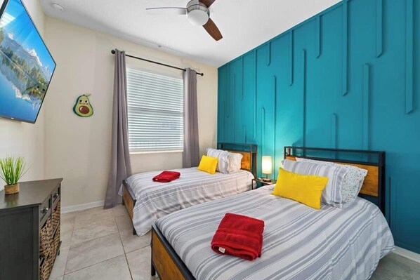Your stay includes free access to the community water park and amenity center. From the clubhouse to sand volleyball and the tiki bar, there's always something to enjoy close to home. When you head out, you are a short drive from major Orlando destinations - approximately 12 minutes to Disney, around 20 to 25 minutes to Disney World depending on route, about 20 minutes to SeaWorld, and roughly 25 to 30 minutes to Universal Studios. Nearby dining and shopping options offer plenty of choices within a couple of miles.