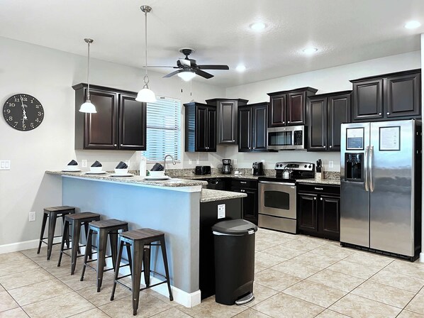Fully Equipped Kitchen with Granite Counters and Stainless Steele Appliances