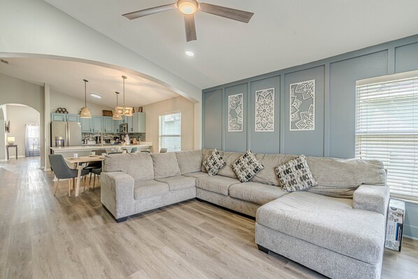 Spacious Family Room with a 75" smart TV
