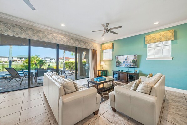 Tilbring timer med moro i det vestvendte private bassenget og spaet, og nyt de vakre solnedgangene i Florida over signaturen Nicklaus golfbane. Den overbygde Lanai har en innebygd BBQ-grill og har et spisebord med plass til 6 og 4 sjesenger.