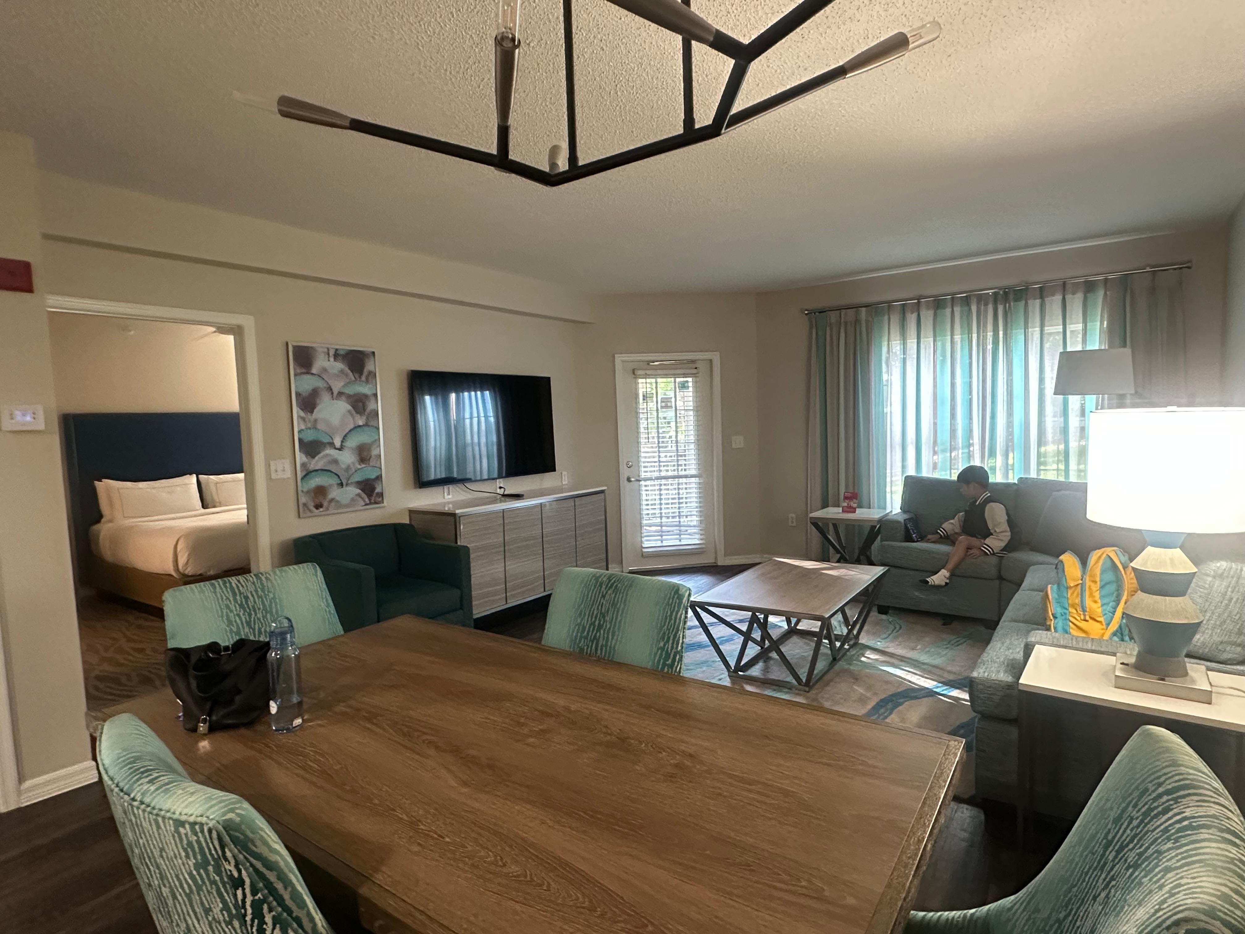 Very nice hotel! Staff was A1! The pools were clean and hot tubs were great! My main complaint was the floors in the common area of the room. They were extremely dirty! The wood color is dark so the dirt is hidden. My son wore his white socks on the floor and 5 mins later they were black. He even said seeing that made his skin crawl and he’s only 11! Clean the floors!!!