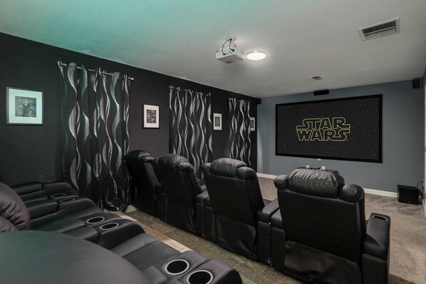 Entire 8 bedroom, 5 bathroom 4,305 square foot home, private pool & spa, in house arcade & movie theatre + Free access to 2 resort-style clubhouses.