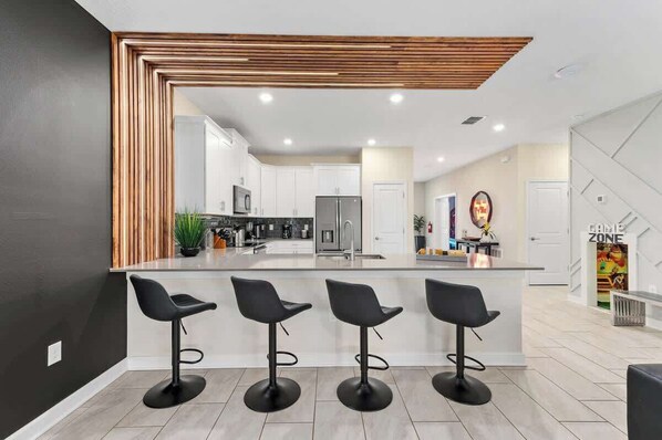 WHAT’S INCLUDED?: Iron and ironing board, pool towels, 500 mbps wifi, smart TVs in all rooms , Theatre room with 150" projector screen and air conditioned arcade room with Ski ball, Jurassic Park Pro Arcade and Pac man air hockey; fun for the WHOLE FAMILY!