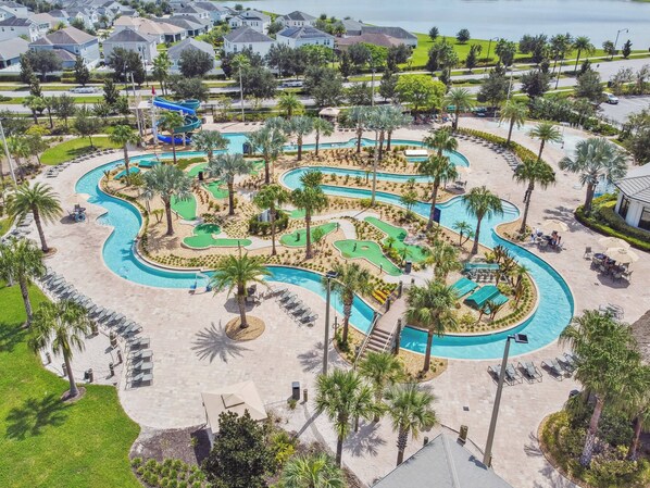 Guests enjoy full access to Storey Lake Resort amenities, including a clubhouse with fitness center and spa, resort-style pool with lazy river and water slide, tiki bar, sports courts, putting green, kids’ playgrounds, and splash park.