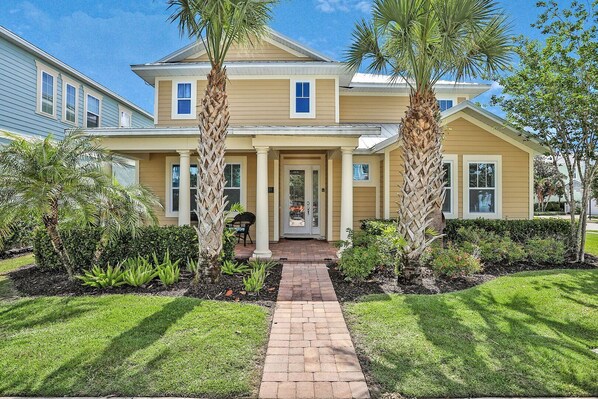 Welcome to Patriots Landing Oasis, a beautiful 5-bedroom, 4-bathroom home that can comfortably accommodate up to 10 guests. Complete with a private pool and spillover spa, a game room with professional arcades, a combined theater room and entertainment loft, and two themed kids' bedrooms, this villa has everything you need for a fun and relaxing vacation.