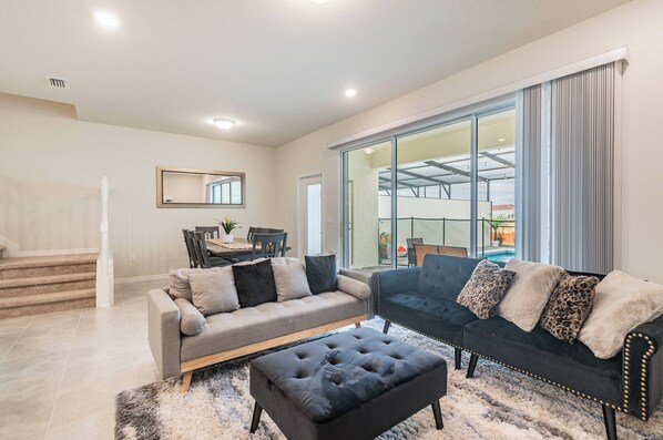 This beautiful two-story villa offers spacious living areas and stylish décor throughout. The open-concept layout creates the ideal environment for gathering, while multiple living spaces ensure comfort and privacy for everyone.