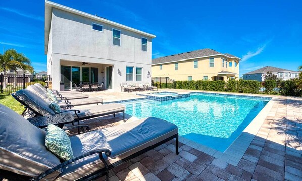 Du og din familie har også den ekstra luksusen til ditt eget private, ekstra store svømmebasseng og spa rett utenfor dørene dine for å nyte Floridas solskinn og varmt vær!