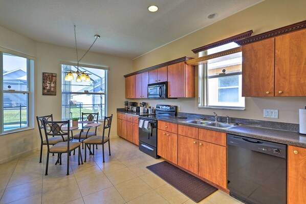 Whimsical Kissimmee Abode Near Golf Courses! ligger i bydelen Crystal Cove i Kissimmee. Reunion Resort Golf Course og Mystic Dunes golfklubb er verdt et besøk hvis du er på utkikk etter morsomme aktiviteter, men hvis du heller vil få med deg noen av områdets populære attraksjoner, kan du ta turen til GamlebyenOld Town og Walt Disney World® Resort. Du kan se om det skjer noe kult på ESPN Wide World of Sports Complex, og hvis du har tid, bør du også få med deg Disney's Hollywood Studios®, en svært populær attraksjon. Se vår reiseguide til Kissimmee