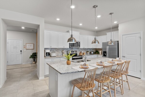 This place was truly magical…and I’m NOT the kind of guy who says that. It had more than everything we needed for two families of four and the themed rooms were amazing. Real estate pictures generally make a place look 50% better than it really is but this place was the opposite! The pictures were great but the house was even better in real life. So much effort was put into the themed rooms and I don’t think the wand controlled lighting was even advertised! Communication with the property managers was incredible, the two times I had to message them questions they responded within 15 minutes. The neighborhood amenities were gorgeous and very fun. I’ve spoken so highly and often of this place I think I talked my coworker into buying in the neighborhood. Hope to rent again thank you!