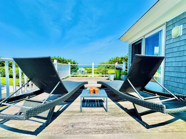 Let nature surround you in this sprawling contemporary where an artists touch and peeks of the Atlantic Ocean are present throughout. Enter this home into the large living, dining space with vaulted ceilings & large sliders all around. Down the hall from the living area you will find a full bath with shower, bedroom 1 - a queen with private full bath/shower and bedroom 2 with two twins. From the living area you enter the light filled updated kitchen and cozy den with peeks of the Atlantic. Take a step down through the den slider and a few steps away is bedroom 3 in the detached artists studio with a full sized futon and 1/2 bath. A floating staircase takes you from the kitchen to an open sitting area and bedroom 4 -a window-filled queen room and bedroom 5 another widow-filled room with private access to the shared full tub/shower bath, queen bed, attached private deck and water views. Simply cross over the dunes on the association path to get to Nauset Beach! Deck, fire-pit and large outdoor shower for rinsing off after a day at the beach.