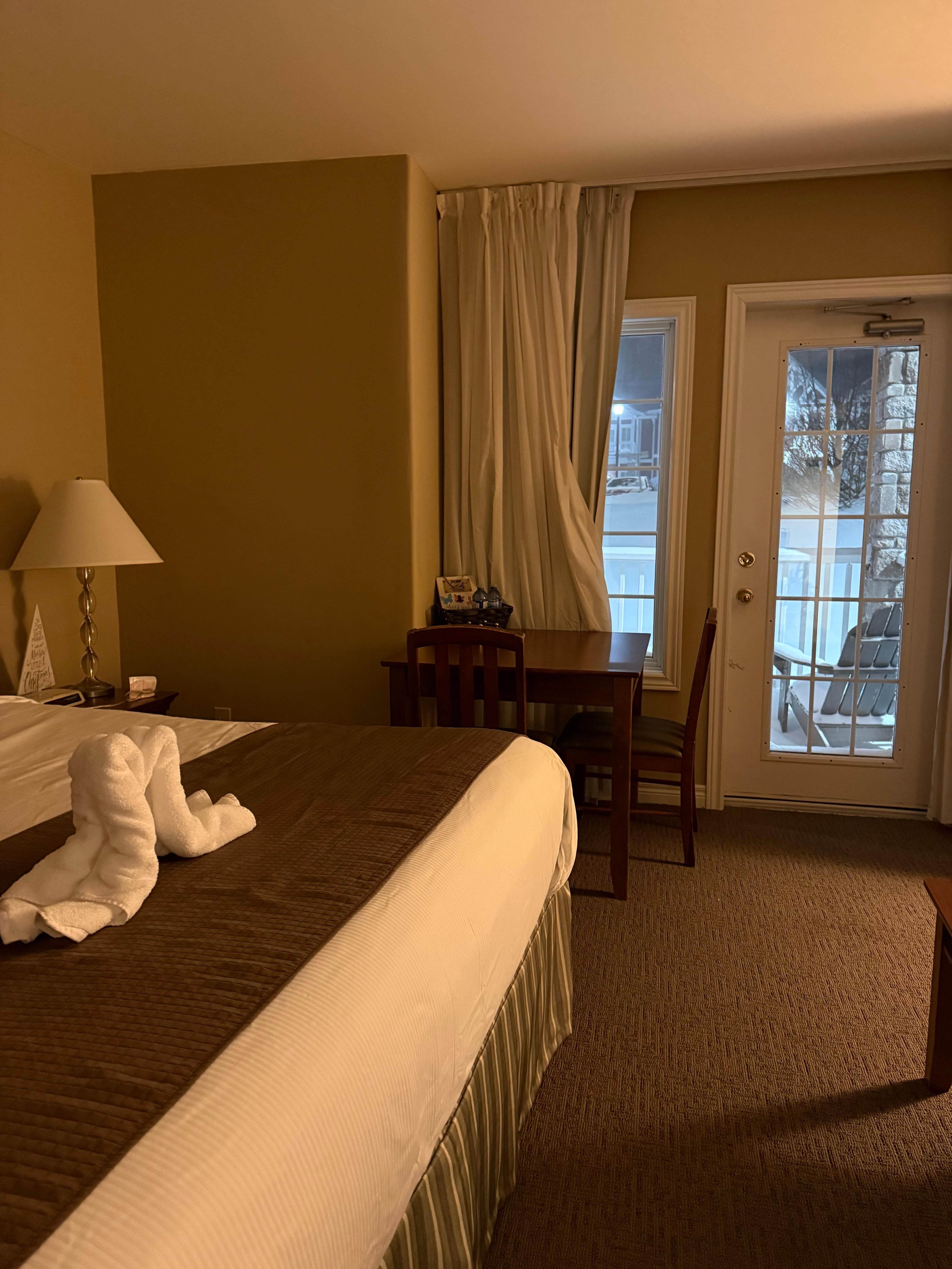We absolutely loved the location as it was close to Vetta Spa and Horseshoe Valley Ski Resort! With all within 5 minute drive was perfect location for us. The condo itself was easy to find and navigate. As you walk in everything is super cozy and clean and feels like home. The bed was so comfy, clean hotel style sheets. The room was very warm and cozy! The kitchenette was perfect for us heating food and storing in the fridge. The bathroom really gave us all inclusive vibes stunning! With this condo it did come with a card to the amenity/recreation centre about a 2 minute walk away. We were so excited about the indoor/outdoor pool, hot tub, sauna, gym and game room upstairs! We loved that it was open till 8pm everyday and yes there were others there but never overwhelmingly busy! We loved our stay and definitely will be booking again. These hosts are the most responsive and so kind, we really appreciated any questions we had we answered almost instantly! Overall was the most perfect spot for winter getaway! Thanks again Benjamin and Margarita see you soon!!!!