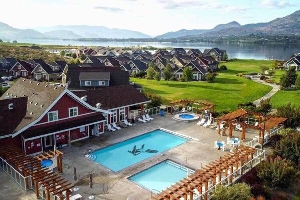 Absolutely amazing vacation destination. Welcome to the Cottages on Osoyoos Lake. This gated community of new homes has its own gorgeous beach, Marina, and clubhouse with 2 pools, gym and 2 hot tubs. Enjoy swimming, boating or kayaking. Play beach volleyball or go visit the nearby wineries and take in a tasting. 1,800ft of waterfront with over 500ft of sandy beach, wide night lit walking trails that meander along the meadow to the beach & fire pits. Close to Mount Baldy, if you`re a skier & Area 27 Motorsports Park has super fun go carts for the whole family.