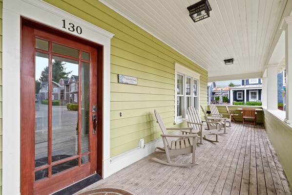 Sea Glass will comfortably sleep up to 14 guests, with five bedrooms in the main house and one in the carriage house. The lovely outdoor space includes a private firepit, garden patio, BBQ and covered hot tub to enjoy throughout the year.