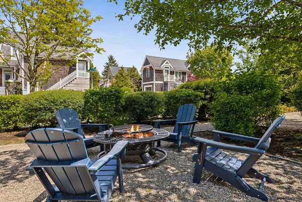 The Deckhouse features a large wrap around porch bordering Blackberry Street and the Elk Creek Beach Promenade. The Deckhouse also has a hot tub, outdoor shower, huge yard, fire pit, and off-street parking.