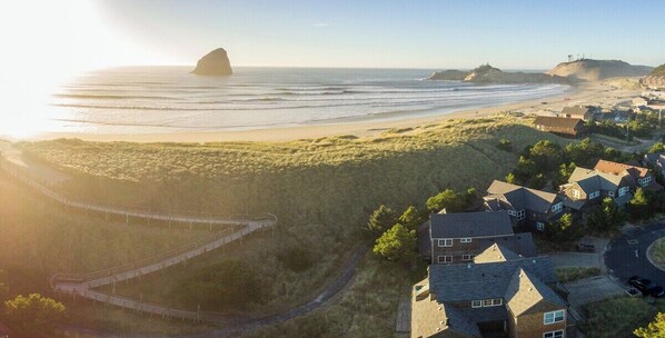 'The Gold Nest' er et vakkert designet og dekorert nyere frittstående hjem med en av de beste stedene i Shorepine Village bare noen skritt til stranden tilgang og grenser til stranden sanddynen. Dette hjemmet har oppgradert fasiliteter, komfortable senger og sengetøy, wifi, kabel-TV, gasspeis. Det ligger ved siden av det morsomme, private stien systemet som går gjennom hele landsbyen, og ligger svært nær Cape Kiwanda og alt shopping, restauranter og rekreasjon. Dette hjemmet har fantastisk innredning og vakker kunst gjennom hele og har vært godt lager for ferierende med BBQ, bøker, leker, spill og sykler. Din hund er også velkommen, og det er et bakdekk med tilgang til turstien og en inngjerdet gårdsplass for privatliv.