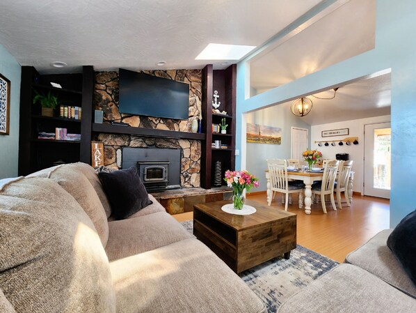 After a long day at the lake, relax in one of several comfortable seating areas the Swell House offers. In the living room, the large L shape couch is perfect for enjoying a movie on the 55" Smart TV. Seating at the kitchen counter will keep the conversation going while preparing food. The master bedroom lounge is great for reading a book or watching TV. Catch the sunset from several outdoor seating areas or gather around the firepit to finish off the night.