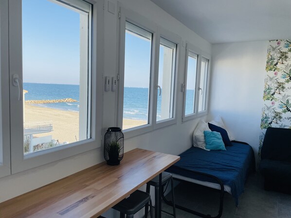 Waterfront studio, sea view 1st line beach