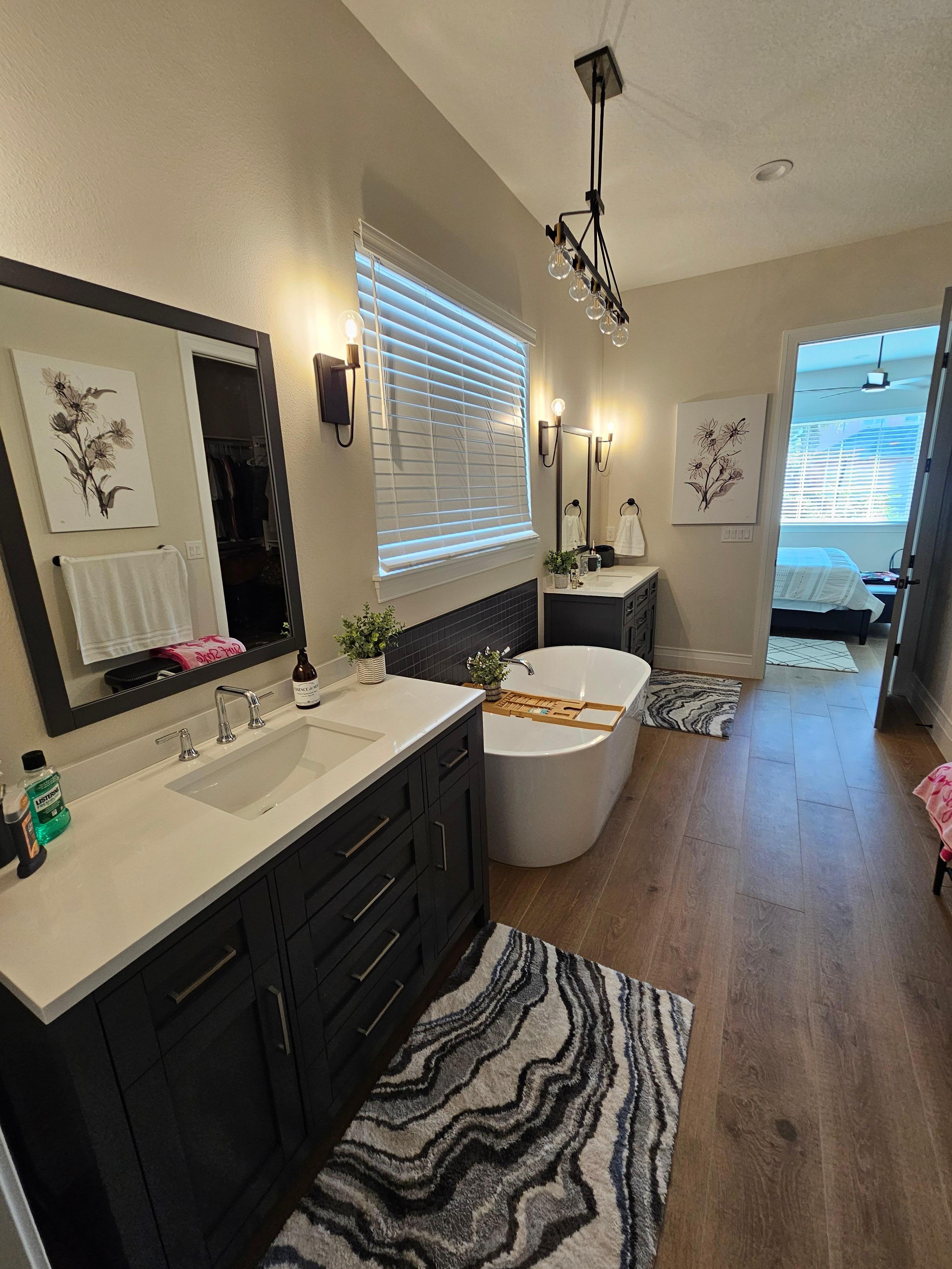 * King Master bedroom with TV and beautiful Ensuite: dual vanities, soaking tub, separate shower