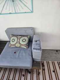 3. Room -- smelled like chemicals and must as soon as we walked in, we had to open the door on a scorching day just to air it out. Chipped and old paint, dirty walls. Bathroom was dirty, cramped and covered in prior guest's hair clippings. The lights flickered, the sound of the lobby door slamming was so loud at night. Patio was dirty and furniture literally in shreds. Bed not comfortable and squeaky. Only plus was that the AC was very strong.