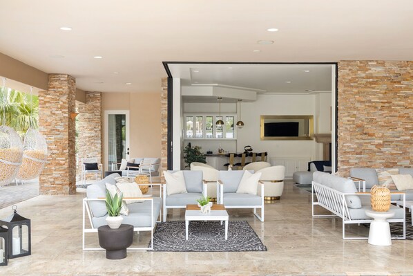Pull up to your Palm Springs retreat and relax knowing that an incredible experience awaits. This chic, contemporary property is professionally designed and curated for you and your guests to enjoy the abundant California sun and “skyviews” from every room. Spacious rooms outfitted with sophisticated, yet playful designs and plush furnishings call for large groups to come together and enjoy what Skyview is all about: time spent with each other, and…the views! Guests can take advantage of the desert's iconic weather out on the beautifully manicured yard, or enjoy outdoor games such as large chess, bocce ball or ping pong. More relaxing amenities include swinging in the hammocks or chilling fireside under the desert stars. Lounge poolside or enjoy your friends and family with ample dining and lounging spaces - this home is perfect for hosting guests for a barbecue or a drink or two (or three!).