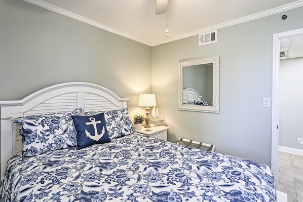 Beachfront condo with Gulf-view balcony, on-site pools, & direct beach access
