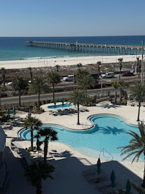 På stranden og med utendørsbasseng og beliggenhet nær Pier Park