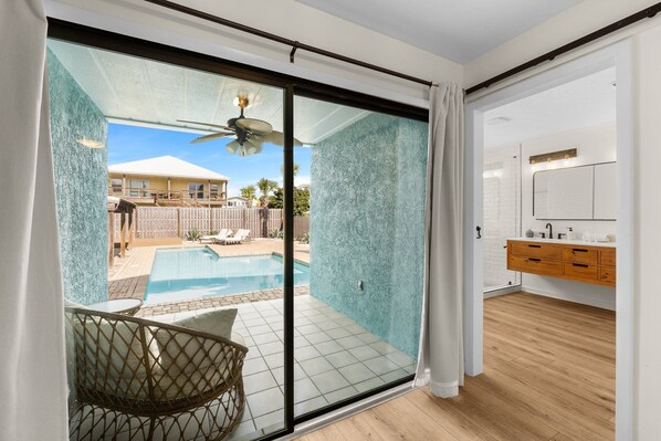 Overview- with a recent remodel, private pool, elegant beach furnishings, modern decor and a casual stroll across the street to the beach, what are you waiting for? Book our place now for a seamless, hassle free vacation rental experience. With brand new linens and towels for each guest, rest assured you'll be sleeping soundly. With enough space for one or two families combined, with room to spread out indoors and out! You'll simply not want to leave the pool area, with plenty of seating and lush landscaping we are sure it'll be a hit for both the adults and the kids. Relax with your morning coffee in our sun room at the front of the house, with plentiful sunshine and cool seas breezes you'll never want to leave.