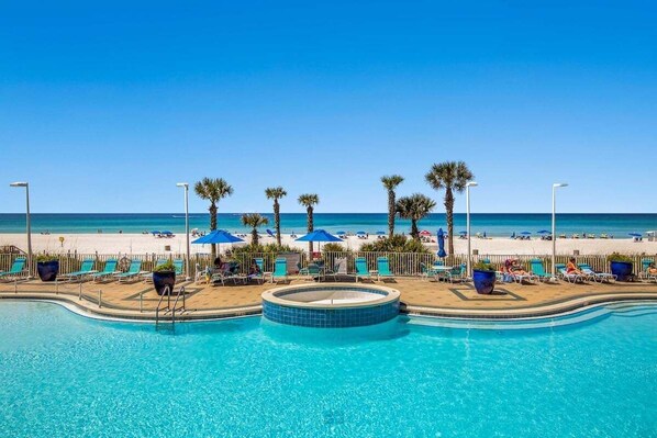 På stranden og med boblebad og beliggenhet nær Thomas Drive