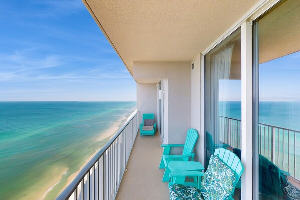 Find your perfect beach getaway at this 25th-floor, gulf-front condo on the beautiful west end of Panama City Beach. Large windows make you feel like you're in paradise from the moment you walk in. Outside on the balcony, you can gaze upon the Gulf of Mexico and watch the sun gently settle in the western sky.