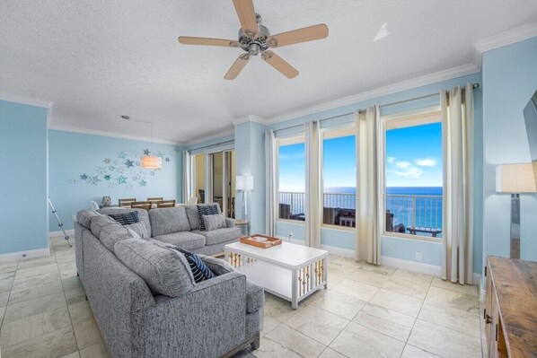 Comfortable living area with Gulf views