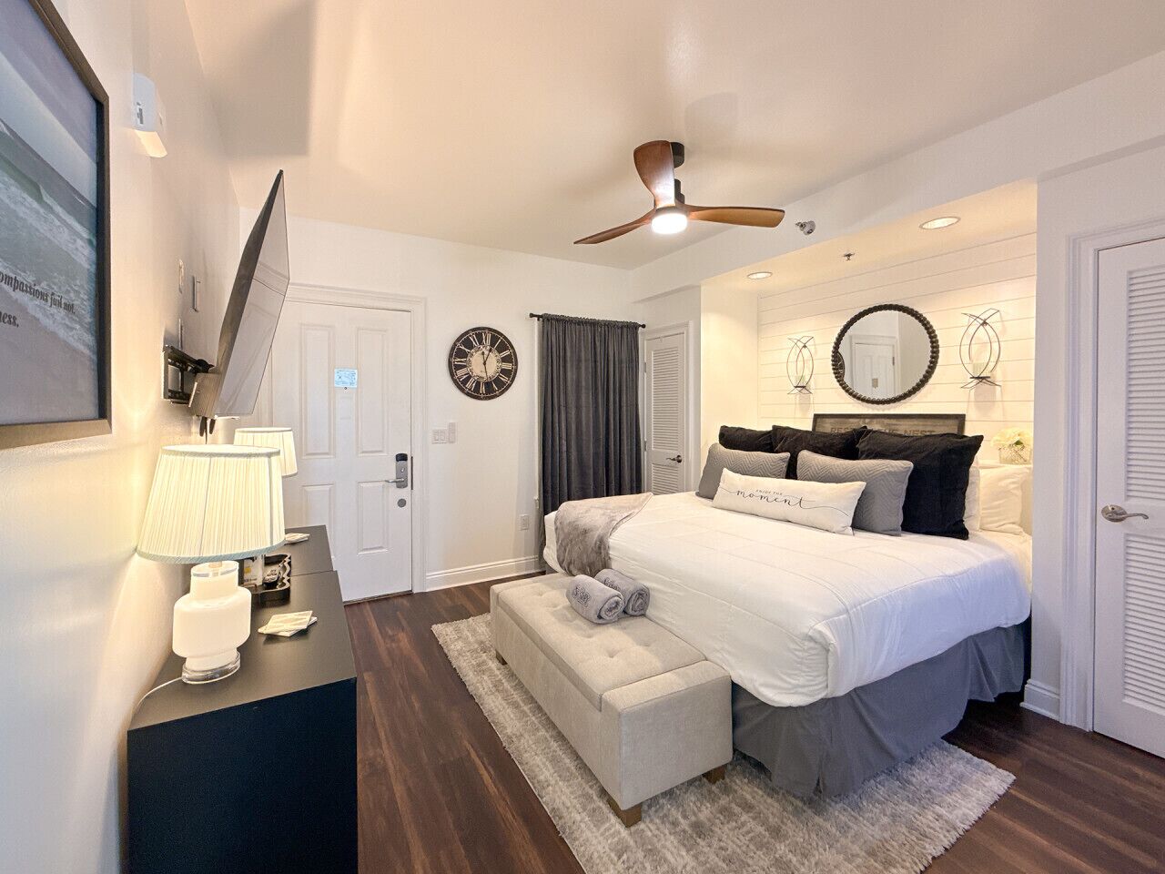 My husband and I booked this for our anniversary. The space is beautifully decorated and has all the amenities for a comfortable stay. The furnishings are brand new and some still had the tags on it! Enjoyed relaxing on the lovely porch. We look forward to our next visit.
